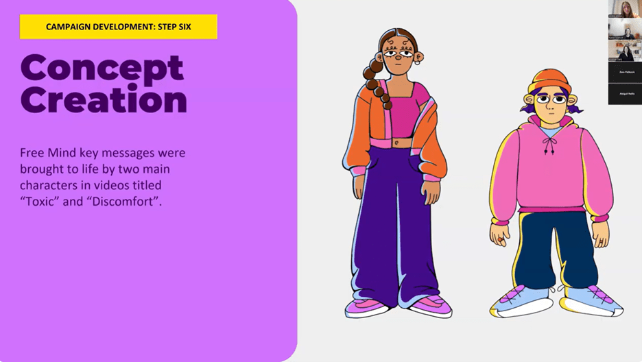 The Free Mind Campaign is a national communication campaign targeting youth ages 12-17, built around the connection between mental health and substance use. The campaign was developed through extensive research, including in-depth interviews and concept testing with teens, and features two main characters (“Toxic” and “Discomfort”) that bring key messages to life.