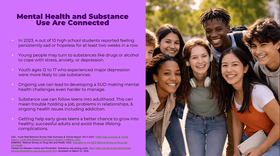 The data behind the campaign is sobering. In 2023, four out of ten high school students reported feeling persistently sad or hopeless for at least two weeks in a row. The Free Mind Campaign meets teens where they are, with messaging tailored by age and level of exposure to substance use.