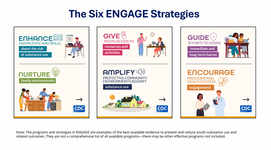 ENGAGE: Evidence-Based Strategies to Prevent Youth Substance Use is a practical, evidence-based resource organized around six prevention strategies for youth under 18. To emphasize why this work remains urgent, Voetsch pointed to data from the Monitoring the Future study. Most youth drug use held steady in 2025 compared to 2024, and past 30-day abstention from alcohol, cannabis, and nicotine was 91% among 8th graders, 82% among 10th graders, and 66% among 12th graders—record or near-record levels. Overall trends are moving in the right direction, but Voetsch was clear that we can’t take our foot off the pedal. New substances like nicotine pouches are on the horizon, and many products remain highly accessible to youth. Progress is real, but the landscape keeps shifting, which is why these evidence-based programs matter.